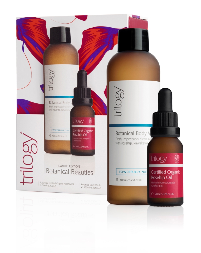Trilogy Botanical Beauties (RRP $28.90). This gift set contains Trilogy’s award-winning Trilogy Certified Organic Rosehip Oil (full-size at 20ml), paired with certified natural Trilogy Botanical Body Wash (185ml). My hubby and I both love the Body wash and I have reviews of both of these lovely products.