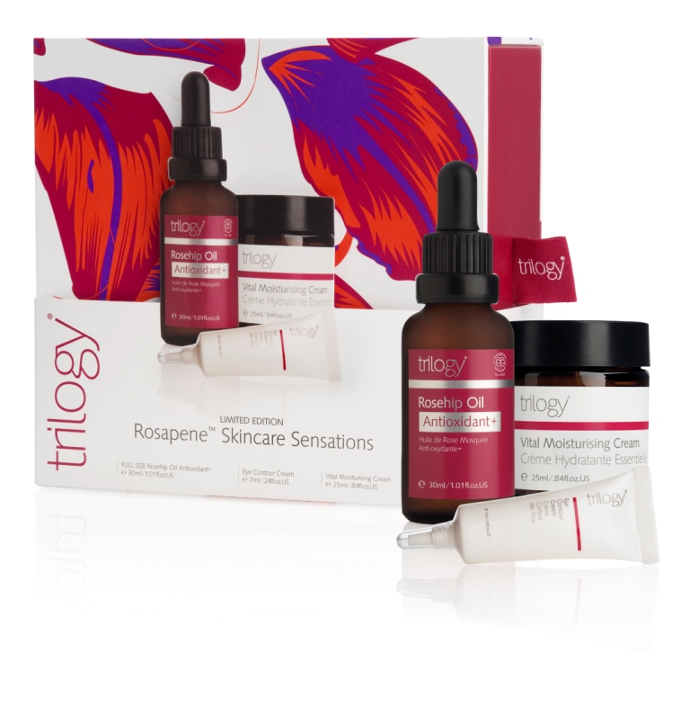 Trilogy Favourites – FREE with the purchase of two or more Trilogy products (excluding Christmas sets). Contains Trilogy Cream Cleanser (5ml), Trilogy Vital Moisturising Cream (5ml), Trilogy Everything Balm (5ml) and Trilogy Rosehip Oil Antioxidant+ (2.5ml)?