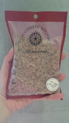 The Cosmetic Kitchen Chocolate Rock Salt ($18.50 for 200g from www.thecosmetickitchen.com.au). Indulge and heal with this detoxifying bath soak, contains raw cacao, a potent antioxidant that blocks free radicals. These rough rock salt is coated with cacao powder which dissolves in the water. The rock salt takes a while to dissolve but there is a hint of chocolate in the water.