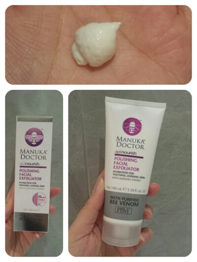 What I got: This is a 100ml tube of Manuka Doctor ApiNourish Polishing Facial Exfoliator. After the winter months, our dull-looking complexion is in great need of being refreshed and invigorated. This exfoliator has the ability to pamper and polish your skin by resurfacing and most importantly of all – hydrating! Regular exfoliation with Manuka Doctor ApiNourish Polishing Facial Exfoliator improves the results of your current skincare routine and helps visibly brighten and rejuvenate your skin, bringing a new youthful appearance. It does wonders for a dull complexion by restoring your natural glow. The age-defying creamy formula cleanses the skin by removing makeup and reducing oil and impurities that build up daily, while protecting the skin’s moisture levels to create visibly brighter, silky smooth skin. The presence of Sweet Almond Oil, which is rich in vitamin E, A, B1, B2 and B6, effectively balances moisture in dry and irritated skin and is easily absorbed helping to firm the epidermis and fighting off signs of ageing to help create more radiant looking complexion. Another added bonus is of course Manuka Doctor’s hero ingredient of Purified Bee Venom (PBVTM), which is delivered into the skin to create age-defying protection.