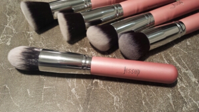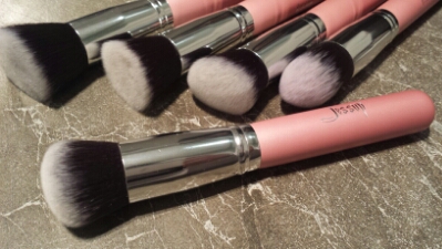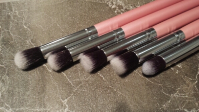 What I got: This is a set of 10 Jessup Kabuki brushes – 5 large and 5 precision brushes. They come in black/silver, gold/silver, purple/silver, blue/silver and the one I got – pink/silver. You could also get just the 5 detail brush set or just the 5 large brush set. No specific description of the product was available on eBay but these brushes are quite soft and on the dense side.