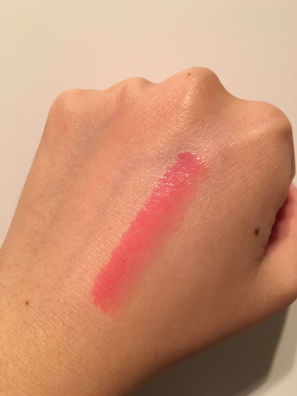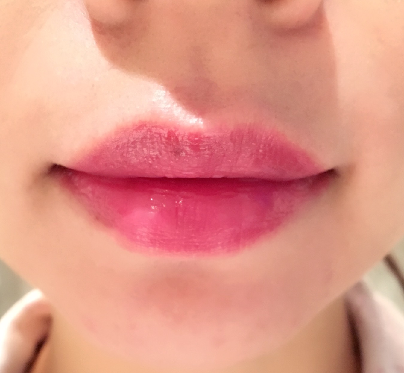 Thoughts: The Juicy Shaker has a really cute packaging that is unlike any other out there. Just shake the bottle, twist open and apply. The applicator is an ultra-soft sponge that dabs the lips with the right amount of product. The texture is really smooth and it feels like a lip oil. No messy liquids, just an easy application with a nice gloss without the stickiness. I would say that it is similar to the YSL Tint-in-Oil, but with a cute packaging and less glittery.