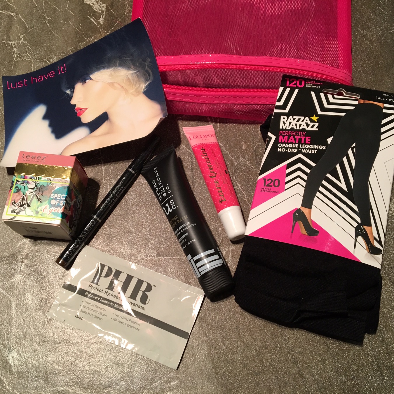 What I got: This is the May issue of the Lust have it! It came in a pink mesh bag with an information card. This month is is a mixture of makeup, hair care, and nail product with brands that are new to me and brands I have tried previously. Let’s take a look what’s inside this month’s bag/box!