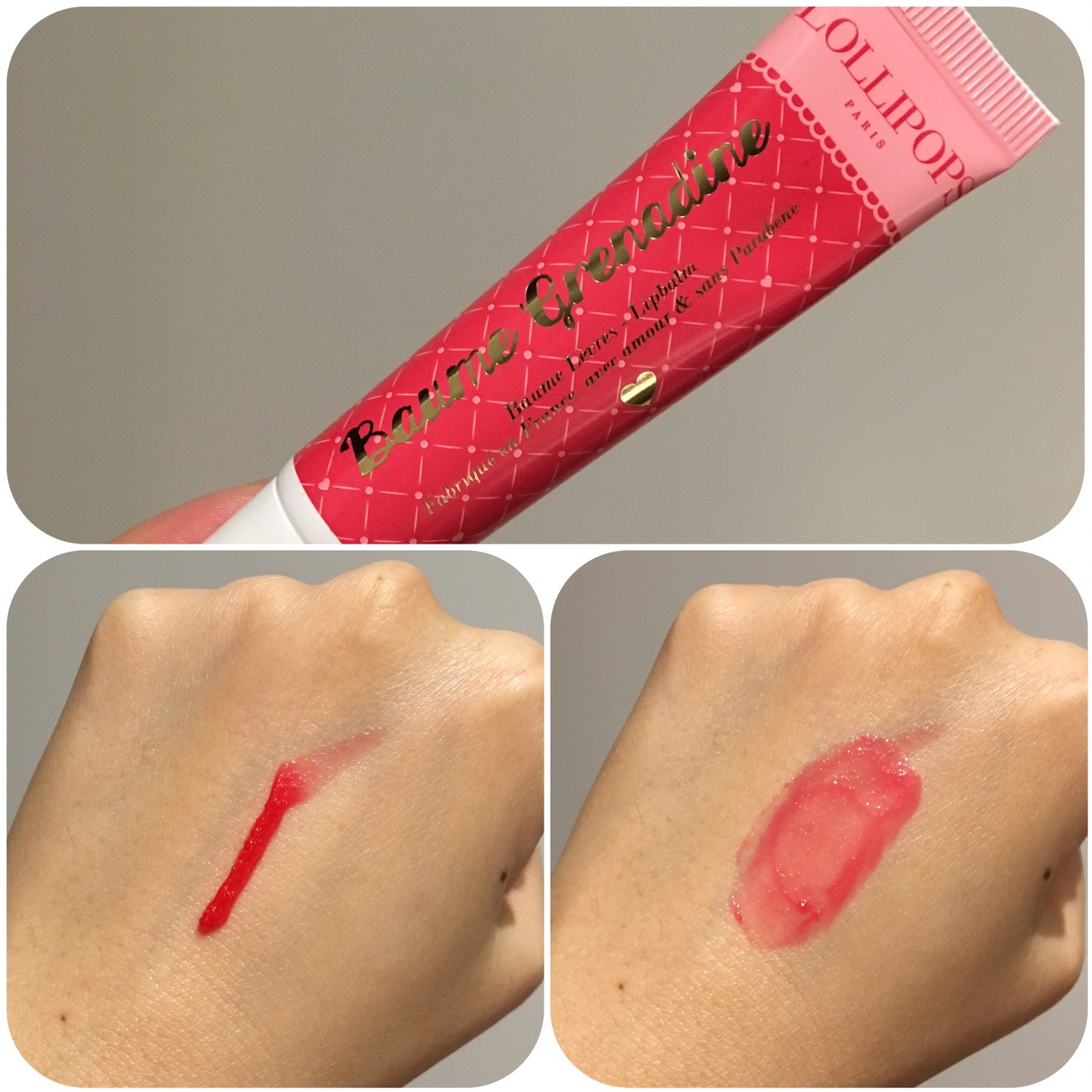 Lollipops Baume Grenadine (RRP$7.45 from www.lollipopmakeup.fr). Creamy lip balm and rich in shea butter, macadamia oil and vitamin E. With restoring and nourishing properties while gentle on the lips. Red shiny finish with an irresistible sweet smell.