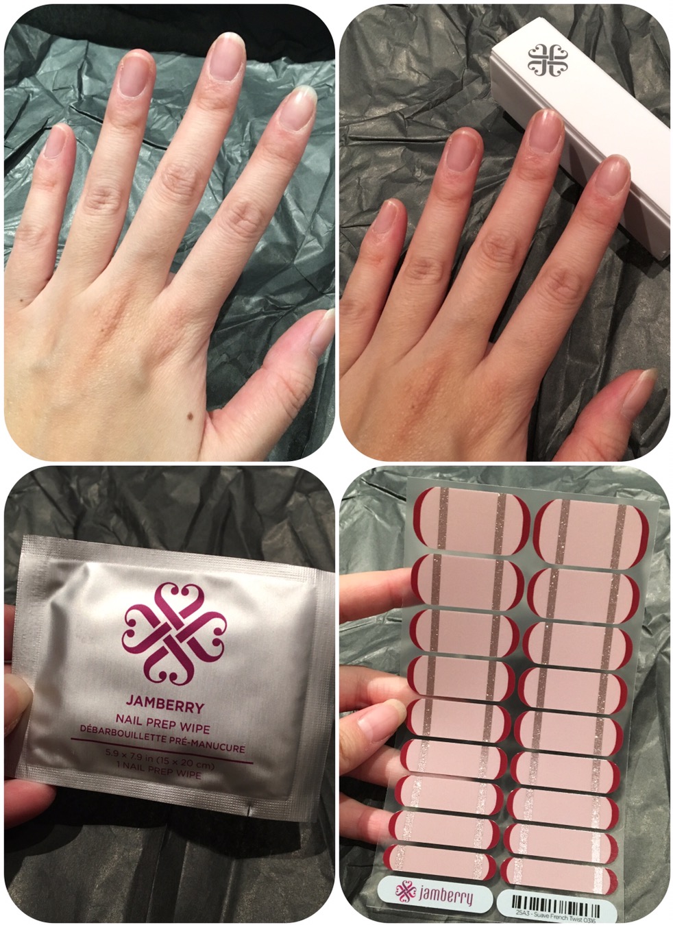Step 1: Remove any existing nail polish from the nails. I cleaned and prepped my nails with the Jamberry Nail Prep Wipe, then I trimmed my nails to the desired shape. Then I use the fine buff to buff the surface of my nails to ensure it has a bit of grip.