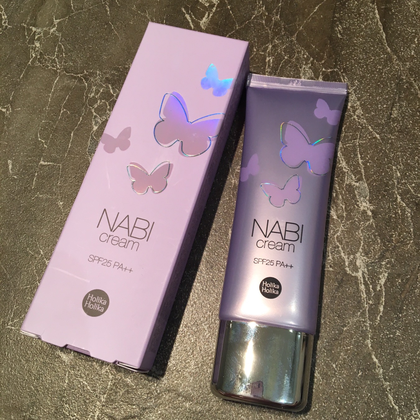 What I got: This is a 50ml tube of Holika Holika Nabi Cream with SPF25 PA+. This lavender shade is called “cottony”. It also comes in a pink and a peach shade. On the website, it claims to: provide natural skin radiance, firm and strong coverage (firm??), whiten skin tone, moisturise and smooths dry skin and is paraben free, mineral oil-free, alcohol-free, etc.