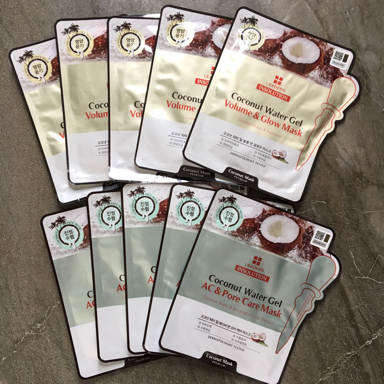 What I got: I got 2 packs of sheet masks from the Leaders brand. These are the Leaders Insolution Coconut Water Gel Masks in AC & Pore Control and Volume & Glow masks. Also comes in Luminous and Aqautoning. Premium bio-cellulose mask with naturally fermented coconut sheet. The AC & Pore Care contains Witch Hazel Water and Eucalyptus Leaf extract. The Volume & Glow contains Phytosqualane.
