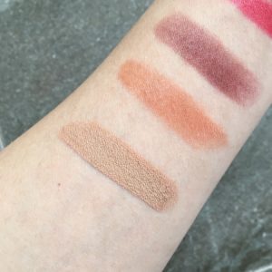 Ulta3 Lipsticks in Soft Toffee and Sugar Plum ($6.00). I have used Ulta3 lipsticks before and they come in black packaging with a black lid, and a clear base showing the lipstick shade. The texture of these lipsticks are not as pigmented as the BYS lipsticks, but they have a nice smooth, moisturising lip balm texture on the lips. They feel comfortable and has a buildable intensity – simply swipe more to get more colour.