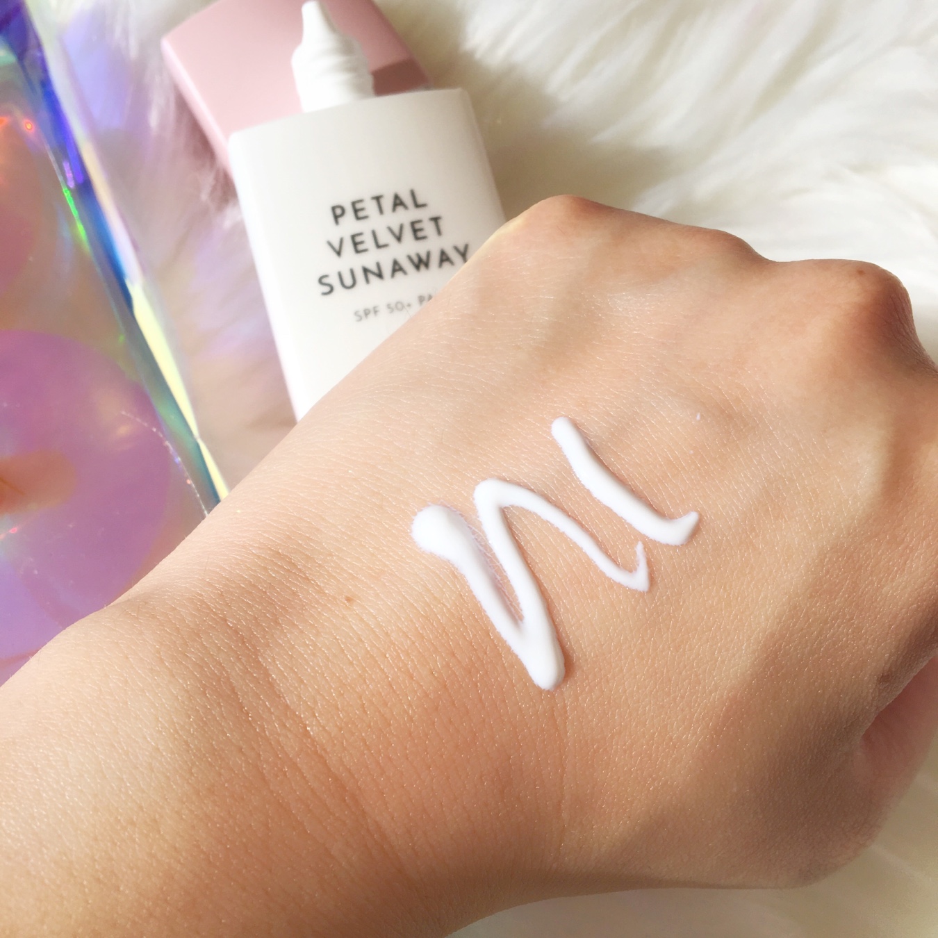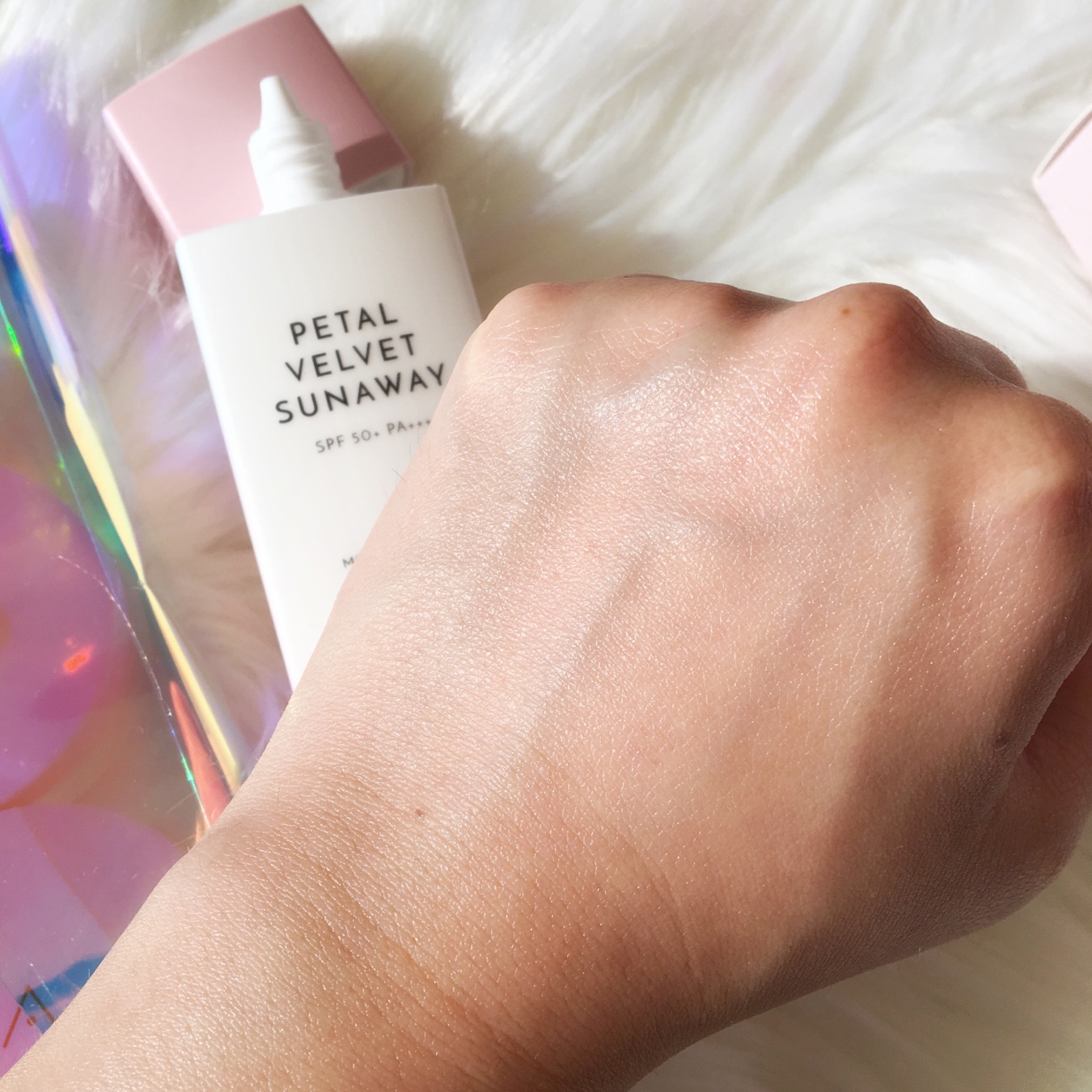 This is a 55ml bottle of the Althea Petal Velvet Sunaway sunscreen with SPF50 PA++++. From the althea website: Shield your skin from the sun’s rays and give it some petal protection with Althea’s Petal Velvet Sunaway! Ultra lightweight, this invisible sunscreen is formulated with hyaluronic acid and Damask rose extracts, ensuring that your skin stays fresh and hydrated throughout the day without any streakiness or a white cast. It has an SPF of 50+ and PA++++, so your skin will be kept protected all day. As part of the Petal Velvet line, it also contains micro-powder particles that give you a smooth, petal-like complexion.