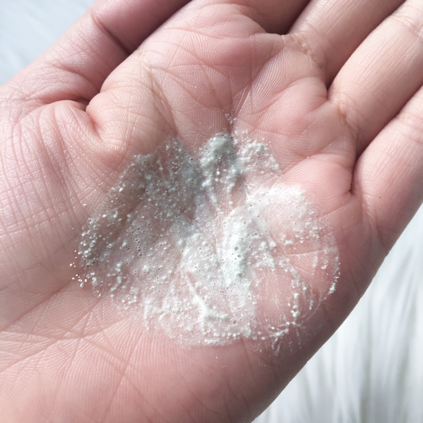 Back to the product. So the powder flows out easily from the jar and the powder mixes with water to create a paste/lather easily. SImply add a little bit more water to allow it to lather/foam up more. I just massage it all over my damp skin and sometimes I let it sit for a minute before rinsing off.