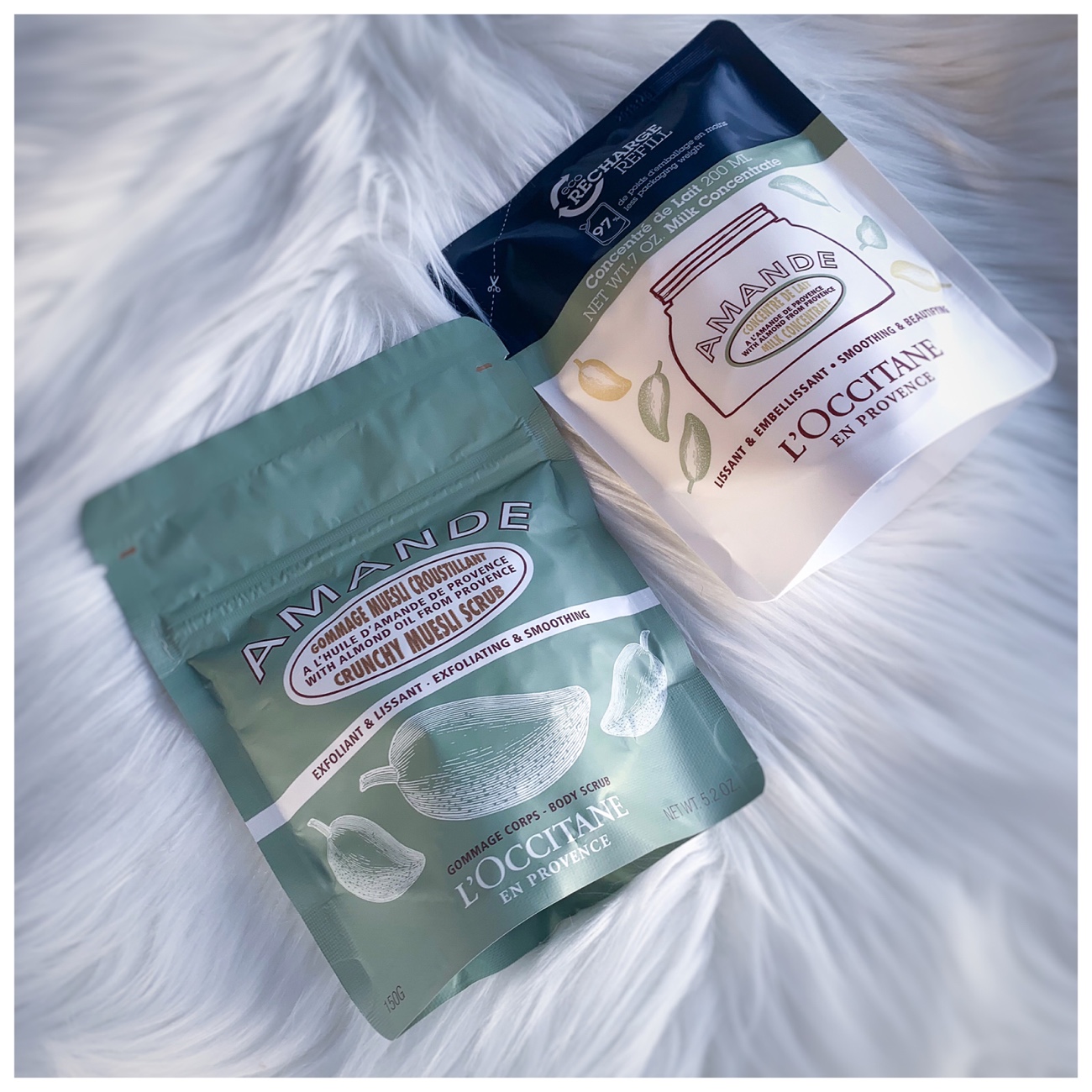 After the Covid19 lockdown in March/April, this is the first time I visited my local L’Occitane (July). I knew that they had new product launched from my favourite bodycare line – Almond range. They launched a new body scrub as well as shampoo and conditioner. I had a quick look at the new products which were on the main display at the door, the scrub looks quite nice and grainy and it was $36 for 150g resealable bag. I also checked out the shampoo and conditioner ingredients list for SLS and I was disappointed to see it as the second ingredient so I put it down. I also picked up a refill pack of the Milk Concentrate which is one of my favourite body lotion/cream.