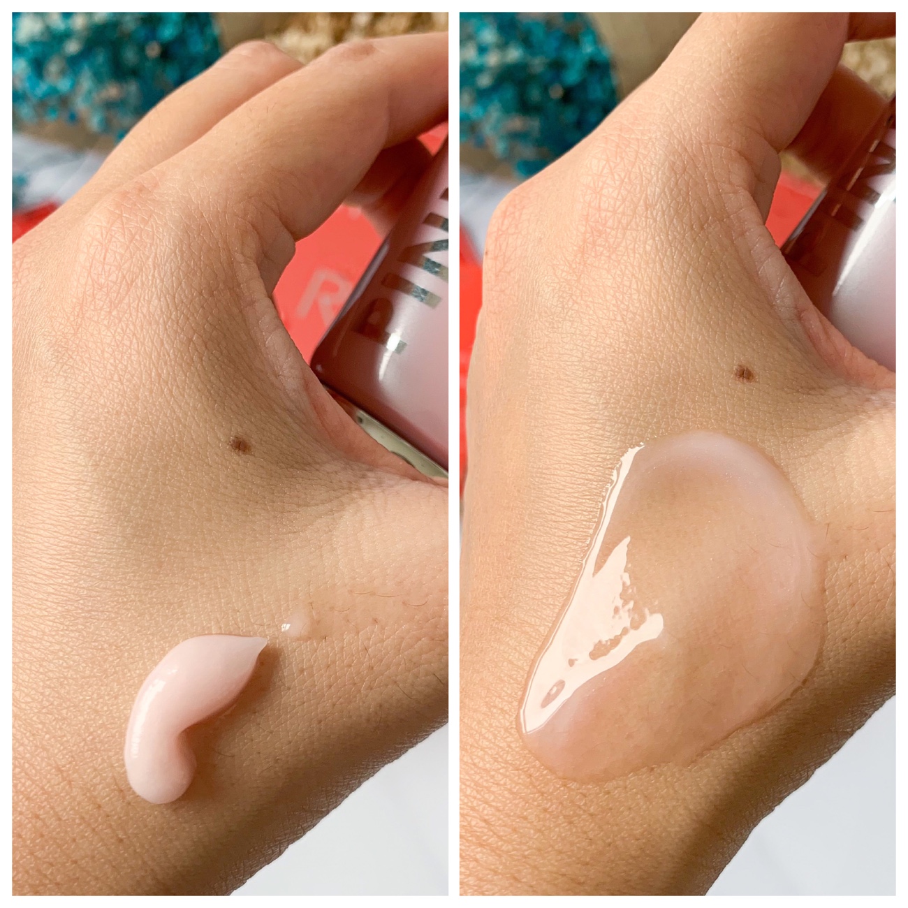 This is a chemical-filter sunscreen, but it does have that moisturiser thickness and texture. It has a slight white cast on the skin at first, but once you rub that in fully, it disappears and leaves a bit of a glow. After it has settled for 1-2 minutes, the glowiness will subside. I have tried using this as a sunscreen (3 finger length) and indeed it was a little too heavy for my combination-oily skin and would take a few minutes to fully set down.