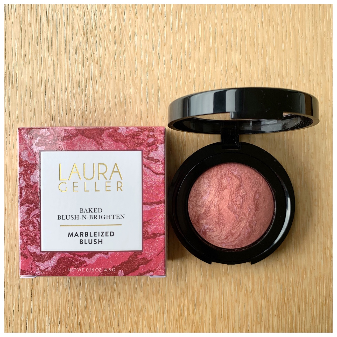 Baked Blush-N-Brighten in Tropic Hues (4.5g). Available in 12 shades. “Created by Italian artisans and baked on terracotta tiles for 24 hours, the iconic marbleized powder delivers fresh color on all skin tones. Infused with antioxidants Centella Asiatica and White Tea Extracts, the famous formula protects your skin with anti-inflammatory properties. Get a gorgeous glow, no matter the season.” – Laurageller.com.