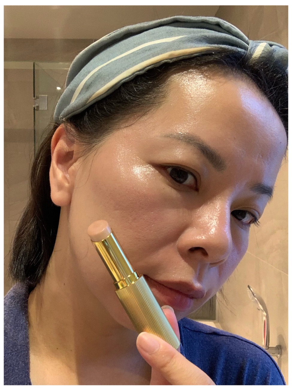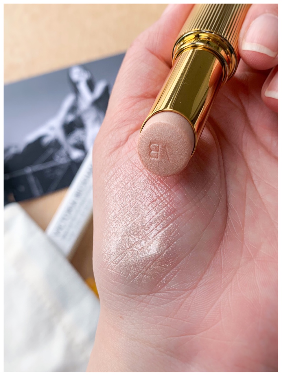 Next is the gorgeous Reflect Highlighter Stick in Pearl. The other shade has a slight bronze tone and it is one of VB’s favourites. For packaging here, we have this old Hollywood glam, fluted gold bullet. The highlighter is smooth and glossy, almost like a gloss once applied! It looks amazing on my hand. However, when I applied it to my face, the colour hardly showed and the glossiness was also lacking. Maybe I was too light-handed? I tried running it over a few more times and I could see the shine, but then I needed to blend it out to make it look more natural, but then the glossy look is now faded out as well.