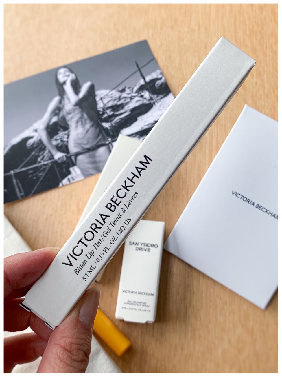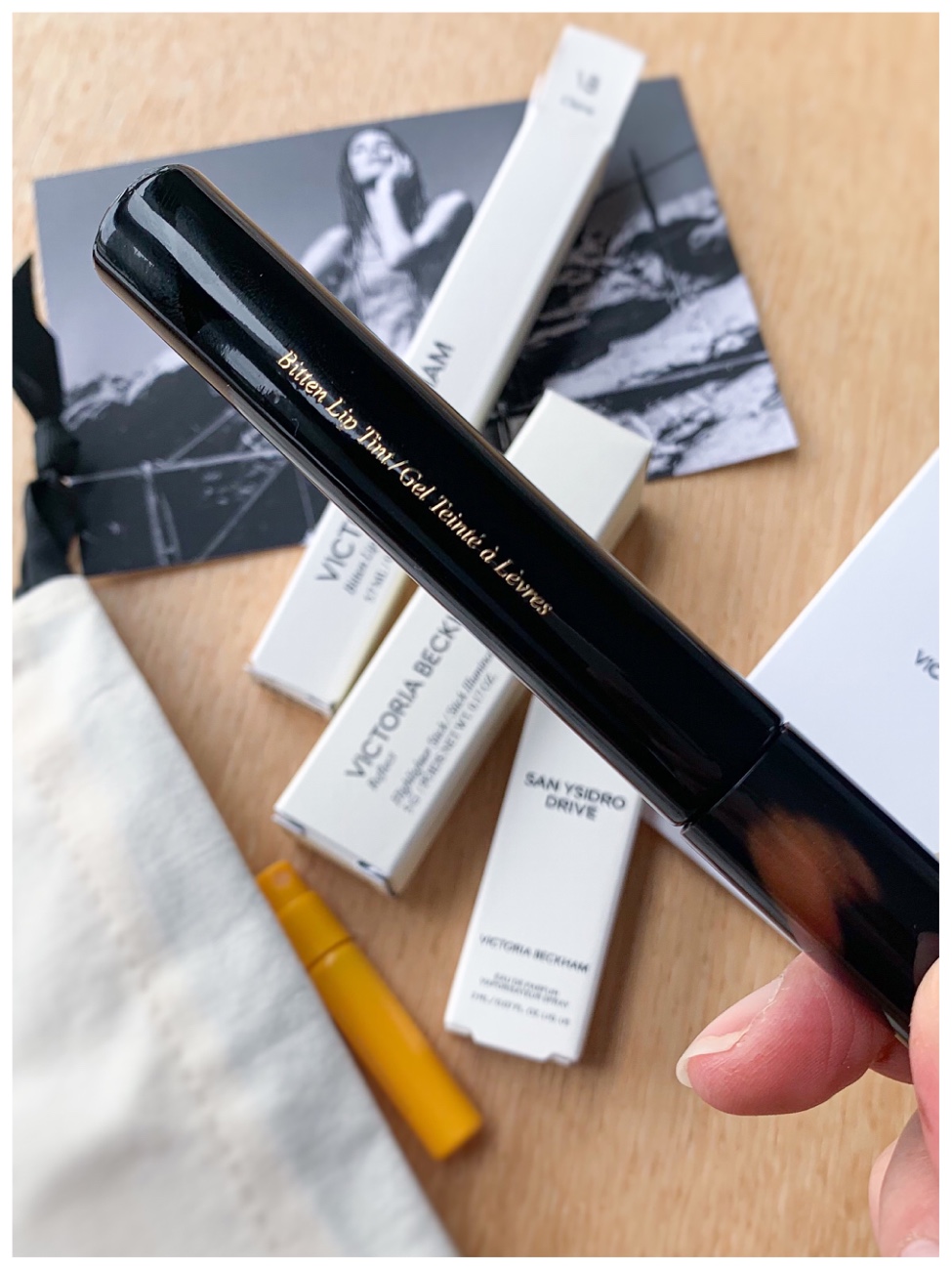This is not my first purchase from Victoria Beckham Beauty, they do really good makeup, especially their mascaras. The packaging is sleek, the products are high quality and the shades are sophisticated. The entire branding and vibe of the makeup line fit VB herself. This year it was my first time shopping on her website during the Black Friday/Cyber Monday sale. I wasn’t considering purchasing BF, but when I got the email for Cyber Monday with 25% off and free shipping, I thought it was the best time to pick up the two items I have been wanting to buy. They are the Bitten Lip tint and the Reflect Highlighter stick. The Bitten Lip Tint in Chérie was $51.75, down from $69, and the Reflect Highlighter Stick in Pearl was $60.75 down from $81.00. There were also fragrance samples – Portofino ’97, Suite 302, and San Ysidro Drive.