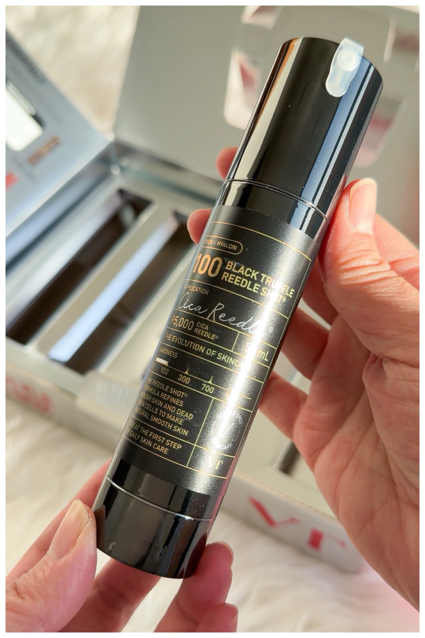 The Black Truffle comes out a translucent white gel-cream with a hint of gold specks. I would say these are noticeably less prickly compared to the original Reedle shot 100. The serum is hydrating, and has a similar effect to the original reedle shots. I wasn’t able to see any significant differences compared to when I’m using the original, so I wouldn’t pay extra for the black truffle.