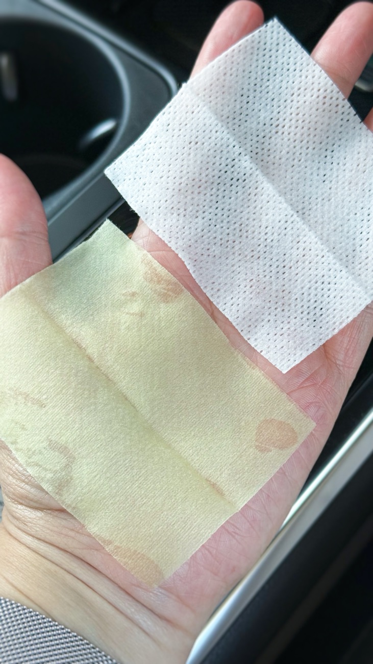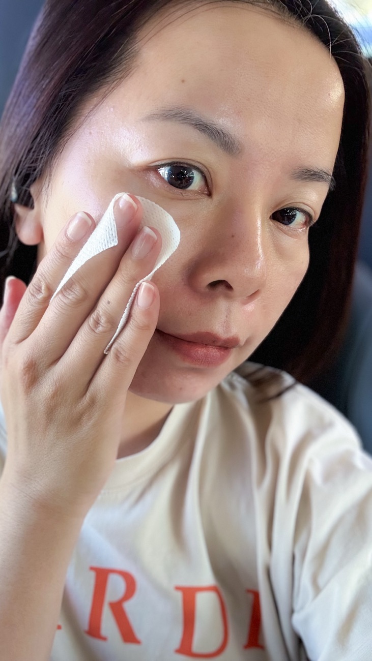 For a normal work day, I mostly wear minimal makeup, but I would definitely have sunscreen. Therefore I prefer to remove whatever I have before I reapply SPF for the afternoon. I keep at least one of this in my handbag and in my car to use when I’m on the run. One packet contains both the white cleansing pad and the green soothing pad. They are not separately wrapped but the white pad does have some exfoliating patterns to help remove light makeup, sunscreen and dirt from the face.